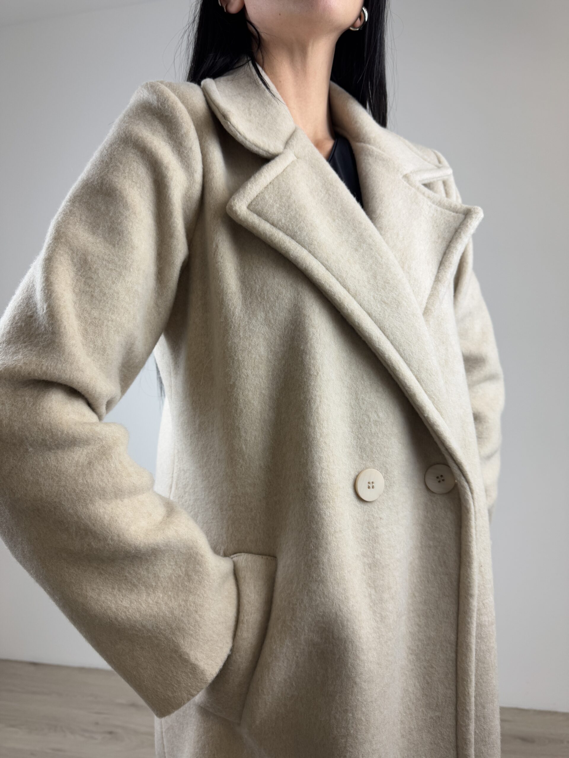 Cappotto doppiopetto misto lana;
