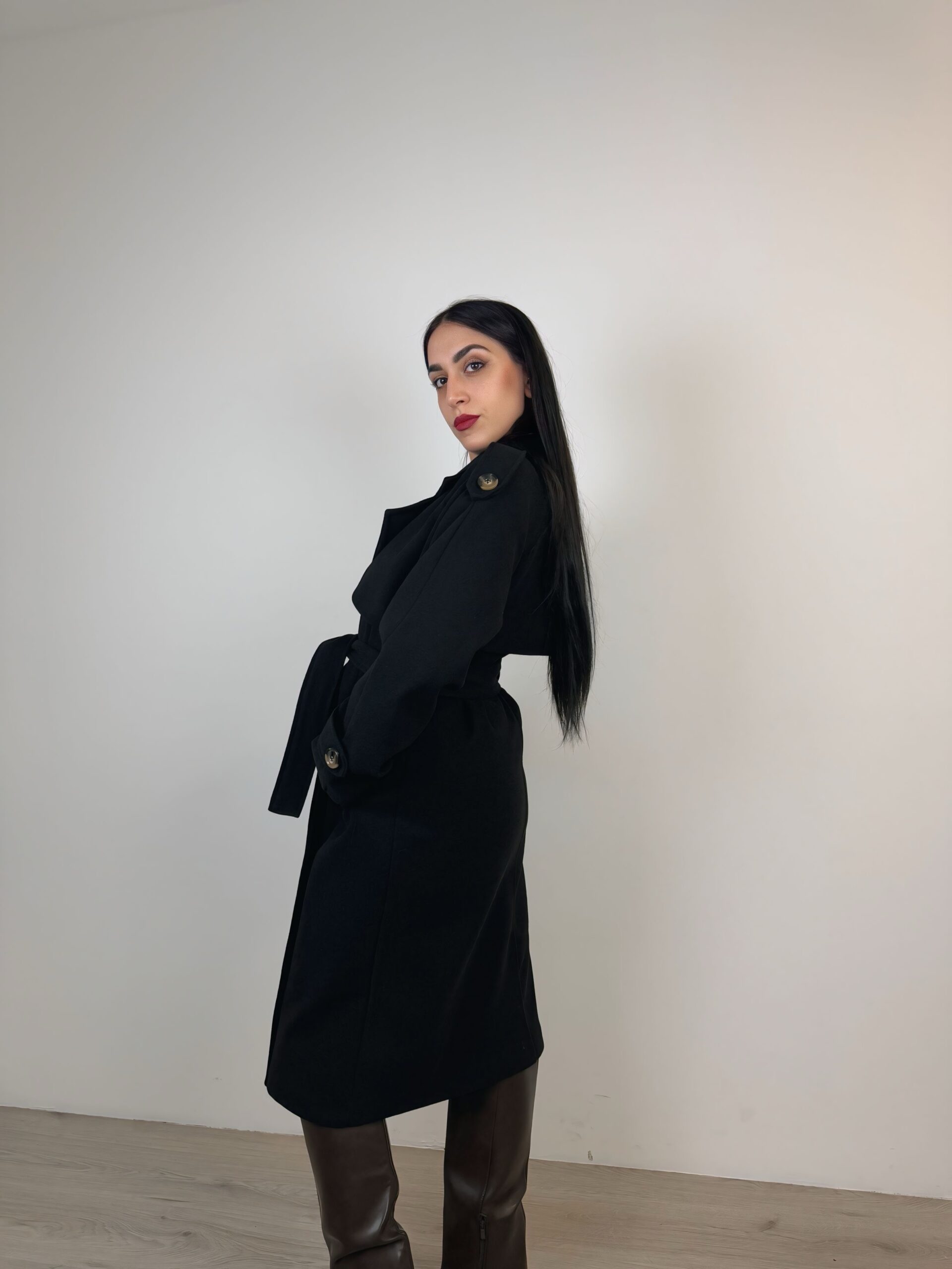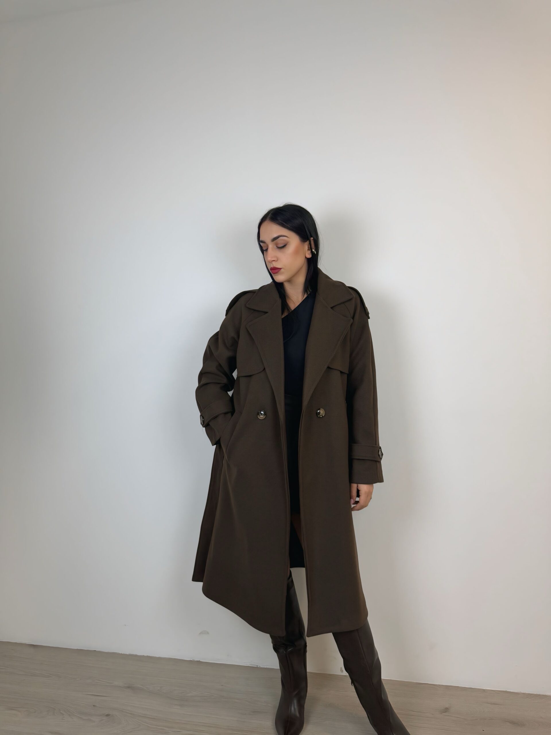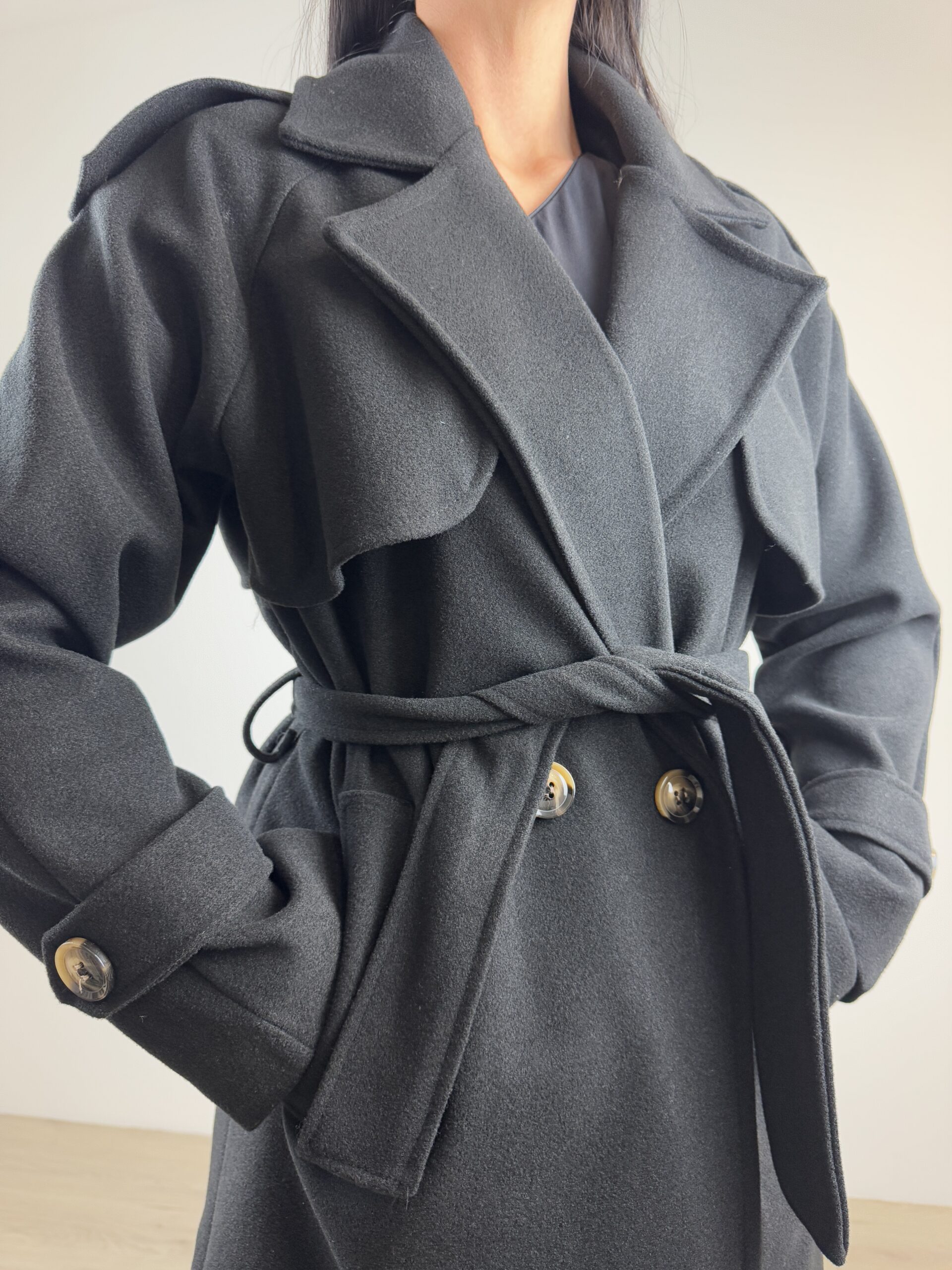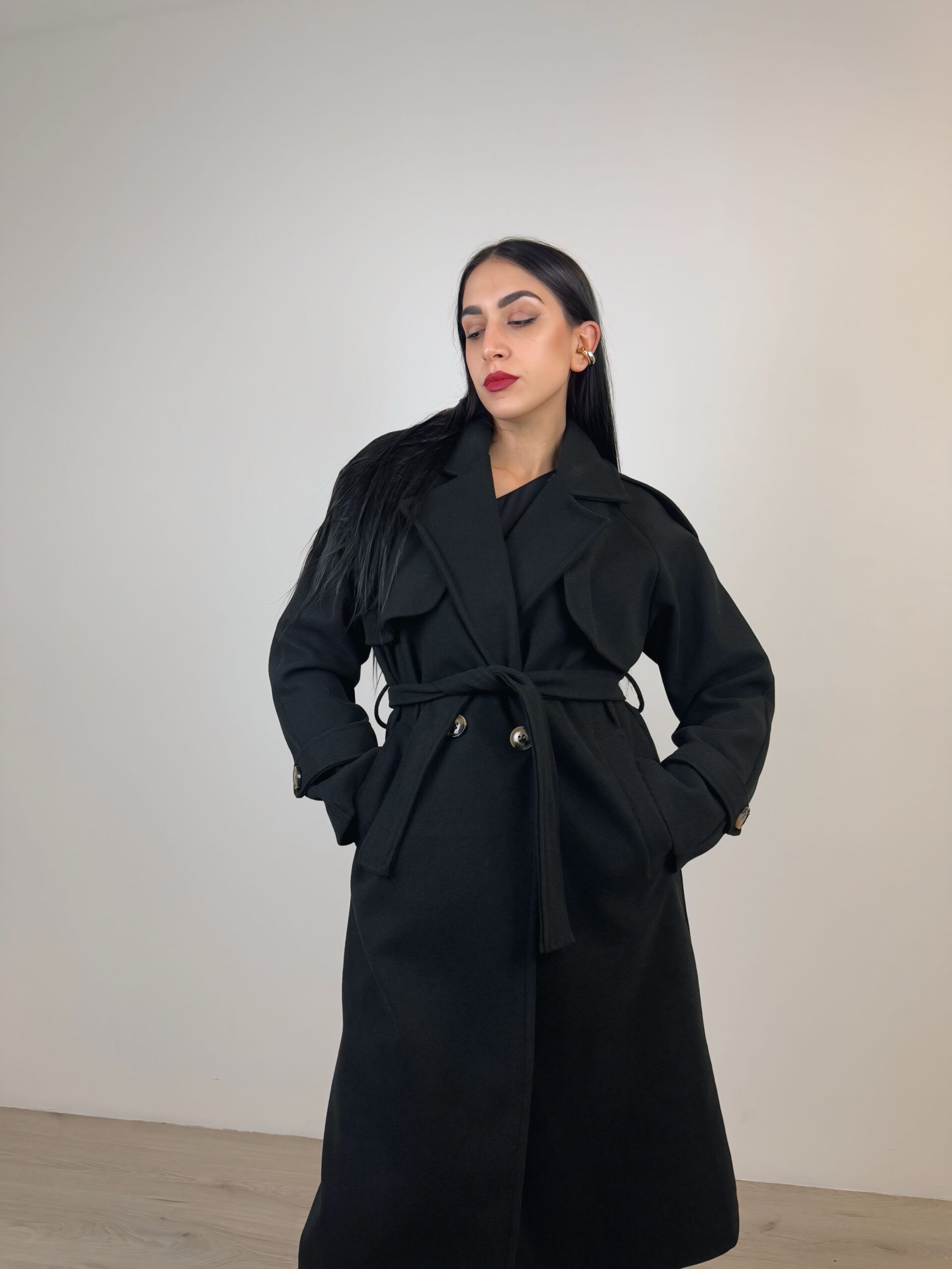 Cappotto doppiopetto a taglio dritto;