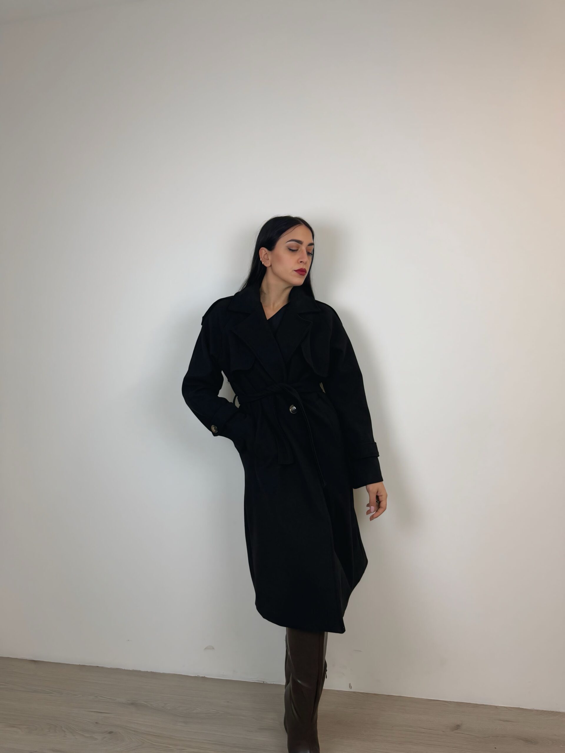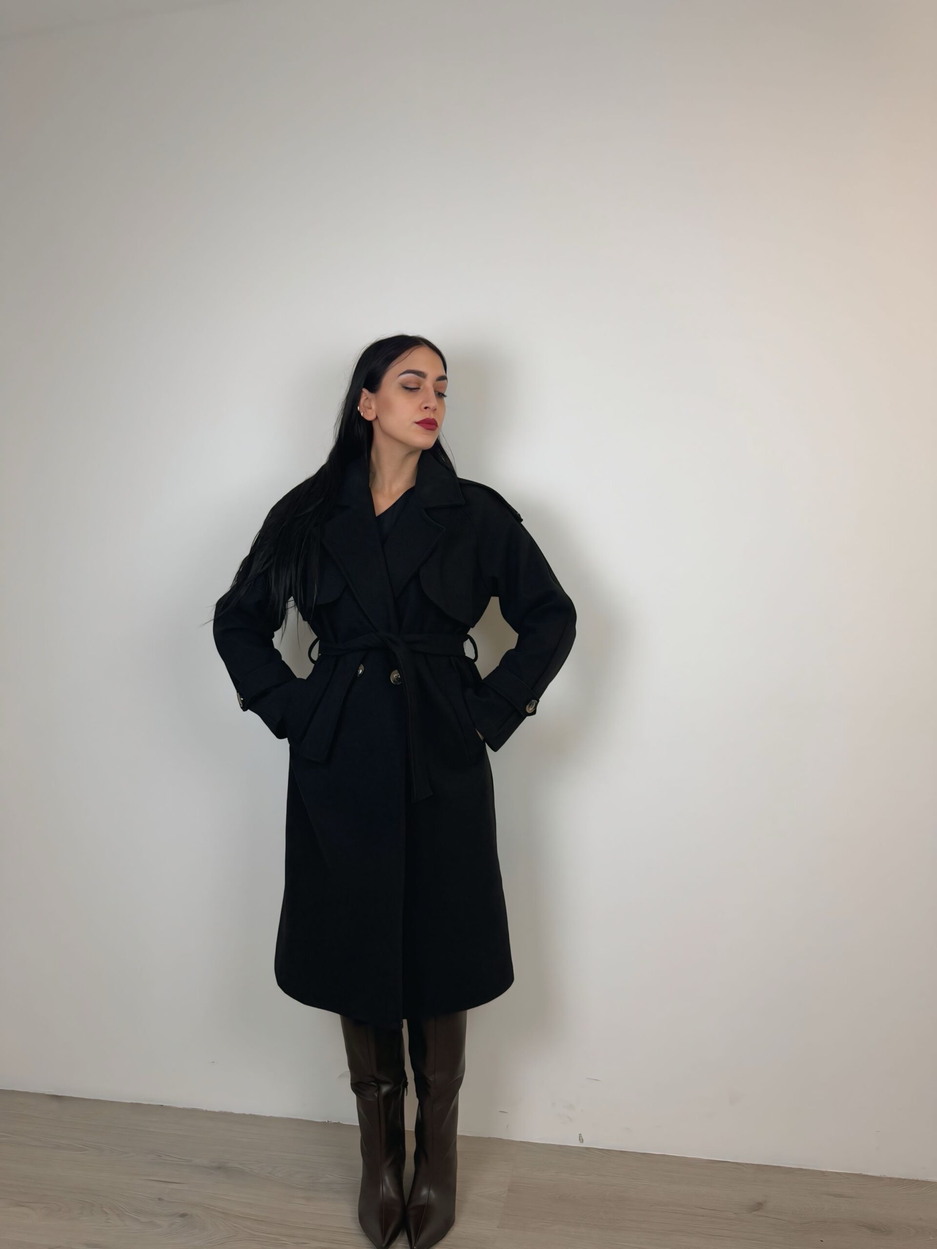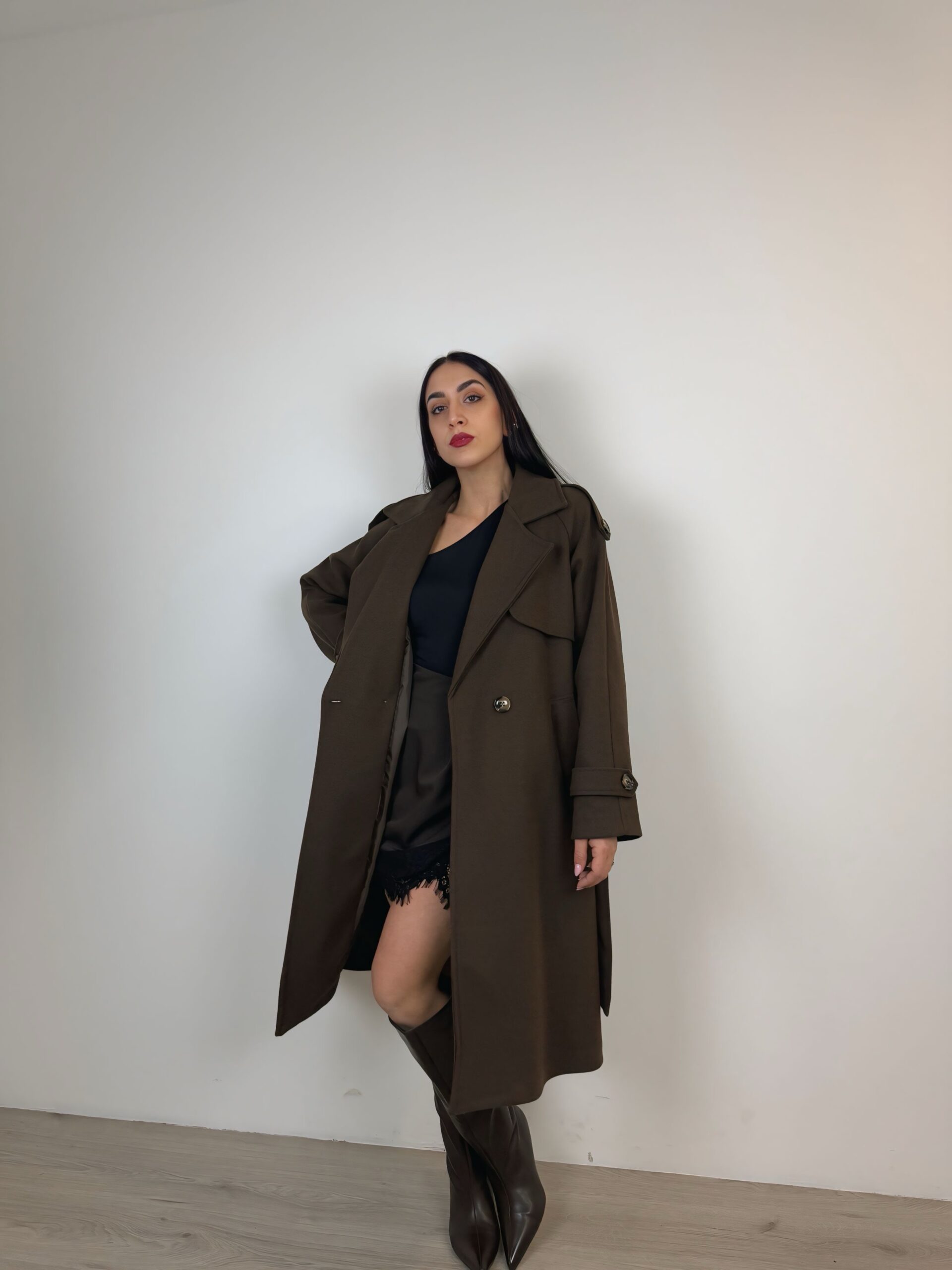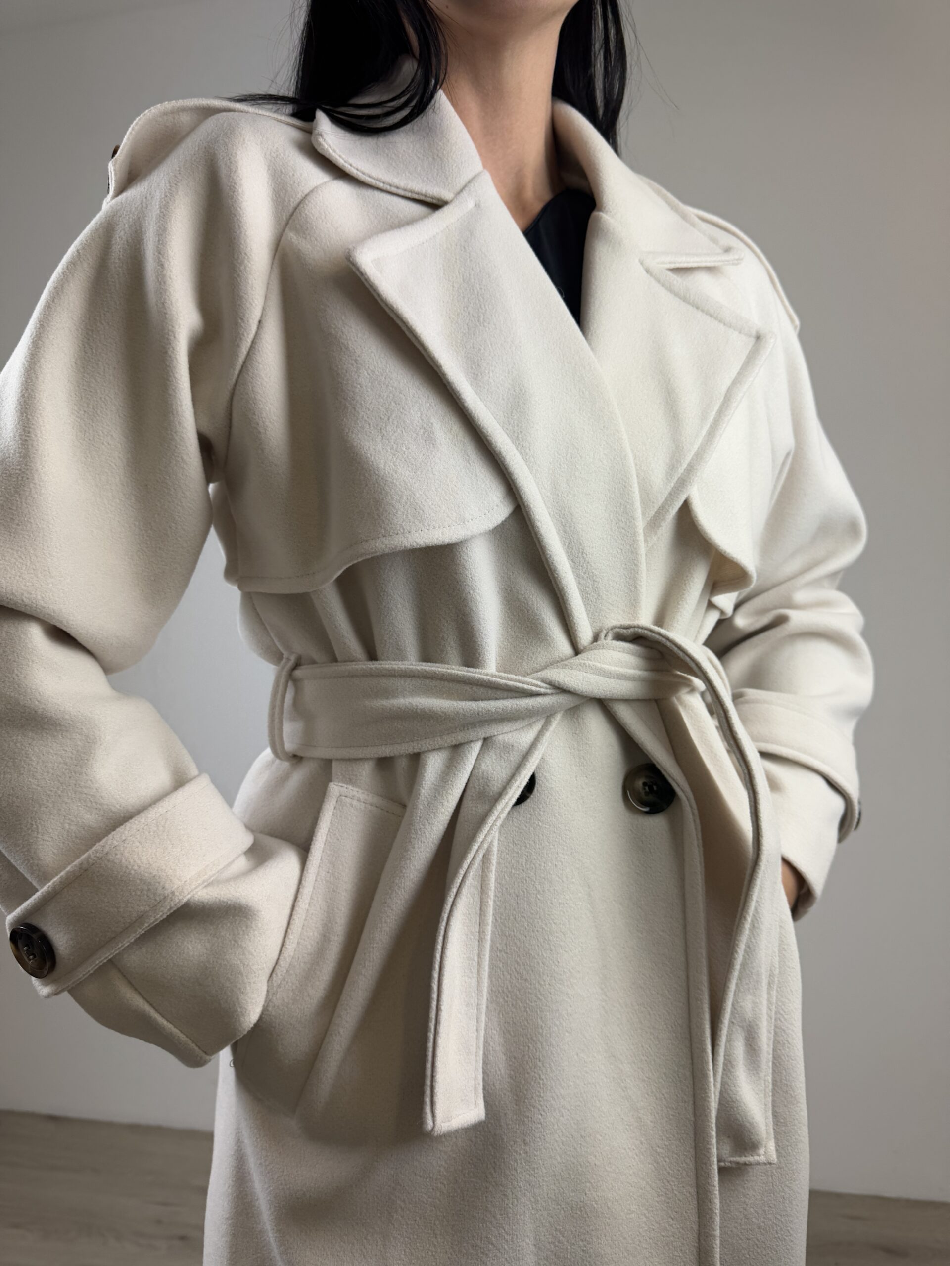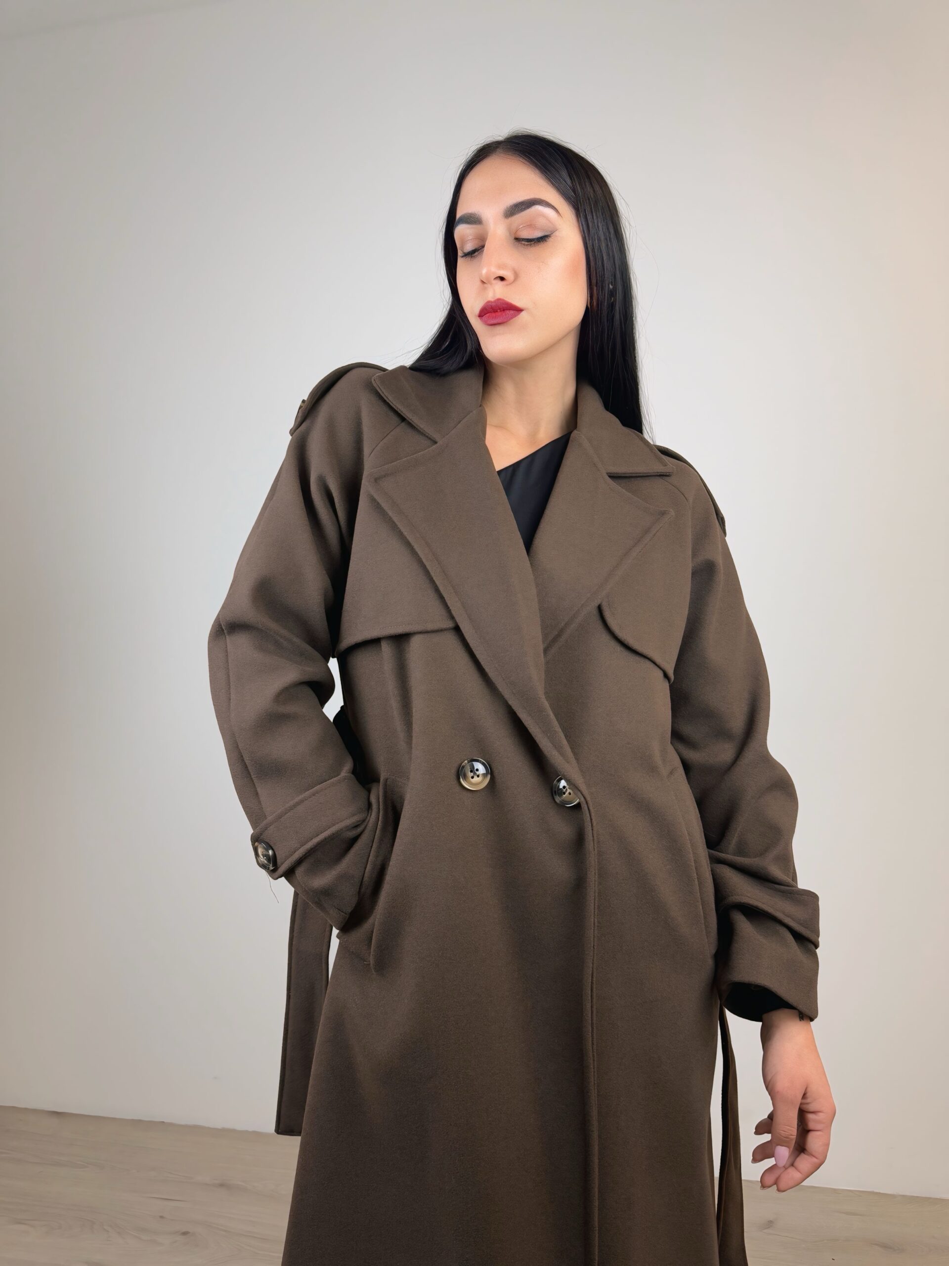 Cappotto doppiopetto a taglio dritto;